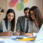 Three confident executives working as a team, ready for their Orals presentation.